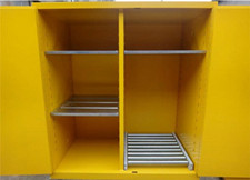 90加侖酸堿柜容積340升,主要用于強腐蝕性液體儲存,此類產品在酸堿試劑的儲存領域應用比較廣泛,故也叫酸堿試劑柜.